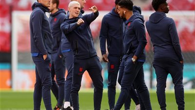 عاين لاعبو منتخب إنجلترا أرضية ملعب ويمبلي الذي يحتضن مباراة إنجلترا ضد الدنمارك في إطار مباراة نصف نهائي بطولة.