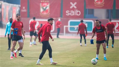 انتظم علي معلول، ومحمد عبدالمنعم، ثنائي الفريق الأول لكرة القدم بالنادي الأهلي، في تدريبات الفريق الجماعية؛ استعداداً