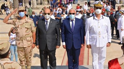 وضع اللواء عادل الغضبان محافظ بورسعيد اكليلا من الزهور علي النصب التذكاري للشهداء بميدان المسلة بحضور
