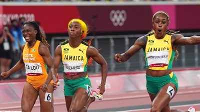 هيمنت جامايكا على جميع ميداليات سباق 100 متر عدو سيدات، ضمن منافسات ألعاب القوى، اليوم السبت، في أولمبياد