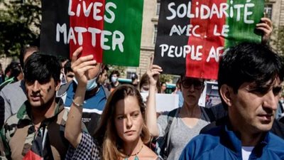 تظاهر المئات في ميدان الجمهورية وسط العاصمة الفرنسية باريس مطالبين السلطات الفرنسية باستقبال اللاجئين الأفغان