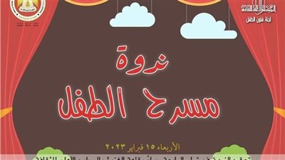 يعقد المجلس الأعلى للثقافة ندوة مسرح الطفل ، وتبدأ الندوة في تمام الساعة الرابعة يوم الأربعاء الموافق 15 فبراير