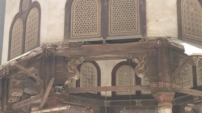 تداول رواد مواقع التواصل الاجتماعى وصفحة تحت عنوان "شارع المعز لدين الله الفاطمى" صور لإنهيار جزء من رفرف ميضأة مدرسة ومسجد السلطان حسن.