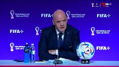 دافع السويسري جياني انفانتينو رئيس الاتحاد الدولي لكرة القدم فيفا ، بقوة عن دولة قطر، في ظل الهجوم الأوروبي الكبير عليها، قبيل