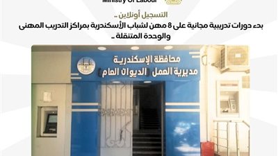أعلنت مديرية العمل بمحافظة الأسكندرية ، عن بدء قبول طلبات التدريب المهنى المجانى على 8 مهن يحتاجها سوق