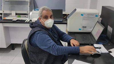 باشر الدكتور أيمن رمضان، مدير المعمل المركزى للفيروسات بالزعفران، بمحافظة كفر الشيخ، والمسئول عن تحاليل كورونا "PCR"