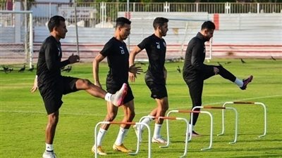 يؤدي لاعبو الفريق الأول لكرة القدم بنادي الزمالك تدريبات إطالات في فندق الإقامة بمعسكر برج العرب، قبل التوجه إلى ستاد الإسكندرية
