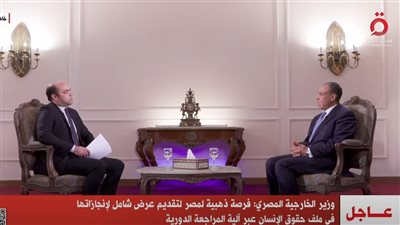 أكد عبد العاطي، أن مصر تنظر إلى ملف حقوق الإنسان في إطار عملية مستمرة لإعادة خلق بيئة مواتية لحقوق الإنسان