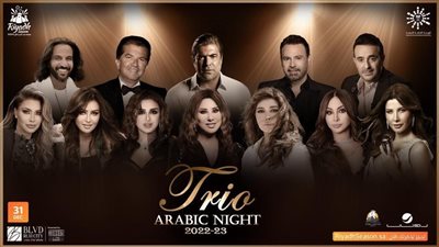 يجتمع في ليلة استثنائية نحو 12 مطرب ومطربة من مصر ولبنان وتونس وسوريا في سهرة الاحتفال برأس السنة أو Trio Arabic Night.