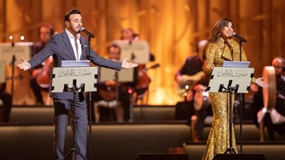 قدم صابر الرباعي و نجوى كرم معا، على مسرح محمد عبده في بوليفارد رياض سيتي، أغنية مادام معايا القمر ل