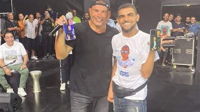 في لفتة إنسانية استقبل الفنان عمرو دياب واحد من جمهوره من أصحاب القدرات الخاصة على المسرح.