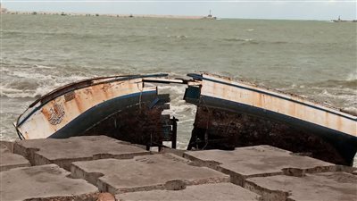 تحطمت أجزاء من قارب صيد صغير، صباح اليوم الإثنين، كان راسيًا بشاطئ الأنفوشي، وسط الإسكندرية،..........