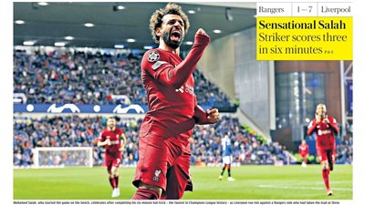 تصدر محمد صلاح، قائد منتخب مصر، ونجم نادي ليفربول الإنجليزي، أغلفة وعناوين الصحافة الإنجليزية الصادرة اليوم الخميس، بعدما سجل