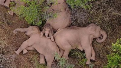 صوّرت كاميرا ثبتتها محطة "سي سي تي في" التلفزيونية الرسمية الصينية قطيعا من الفيلة البرية في جنوب غرب البلاد وهي تستريح بعد مسيرة امتدت على 500 كيلومتر