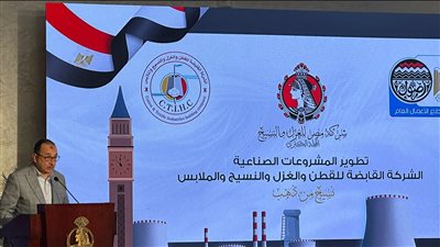 قال الدكتور مصطفي مدبولي، رئيس الوزراء، الدولة تستهدف إعادة إحياء صناعة الغزل والنسيج والاستفادة من القطن