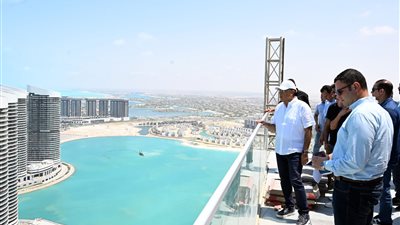 خلال جولته اليوم بمدينة العلمين الجديدة، تفقد الدكتور مصطفى مدبولي، رئيس مجلس الوزراء، ومرافقوه، الأبراج