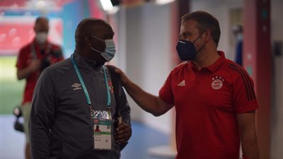 التقى بيتسو موسيماني، المدير الفنى للفريق الأول لكرة القدم بالنادى الأهلى هانز فيليك المدير الفني لفريق بايرن ميونيخ فى ملعب.