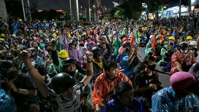 أدار متظاهرون تايلانديون يطالبون بإصلاحات سياسية وبحقوق ديمقراطية، ظهورهم لموكب ملكي يحمل الملك ماها فاجيرالونجكورن،