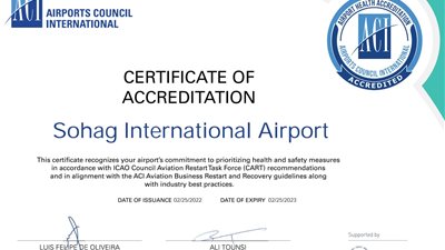نجح كل من مطارى "أسيوط وسوهاج " الدوليين فى تجديد شهادة " الاعتماد الصحى الدولى للسفر الآمن "