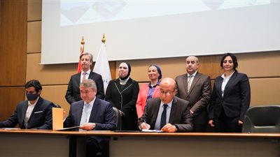 شهد الطيار محمد منار وزير الطيران المدنى والدكتورة ياسمين فؤاد وزيرة البيئة والاستاذة نيفين جامع وزيرة التجارة والصناعة مراسم
