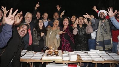 احتفلت الفنانة روجينا بعيد ميلادها مع فريق عمل مسلسلها ستهم في آخر يوم تصوير المسلسل.