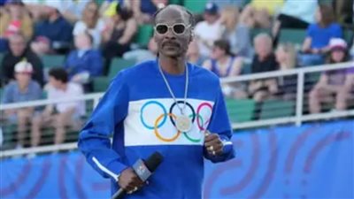 يستعد سنوب دوج لترك بصمته الخاصة على المراحل النهائية من مسيرة الشعلة الأولمبية في ضاحية سان دوني في العاصمة الفرنسية باريس يوم الجمعة.