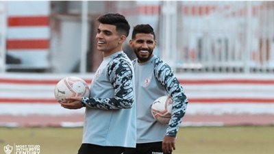 انتظم الثنائي المغربي أشرف بن شرقي ومحمد أوناجم لاعبا الفريق الأول لكرة القدم بنادي الزمالك في التدريبات الجماعية