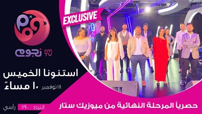 تذيع قناة "نجوم إف إم" على تردد "11900 v" عبر "النايل سات"، حلقة خاصة عن التصفيات النهائية لمسابقة "ميوزيك ستار"،