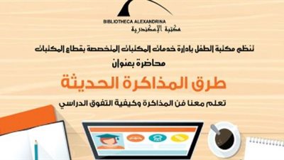 أعلنت مكتبة الإسكندرية عن طريق مكتبة الطفل بإدارة خدمات المكتبات المتخصصة عن محاضرة مهمة جدا مع موسم دخول المدارس،