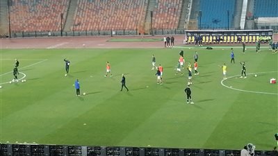 نزل لاعبو الأهلي والبنك الأهلي، لإجراء عمليات الإحماء قبل انطلاق المباراة التي تجمعهما اليوم الثلاثاء في