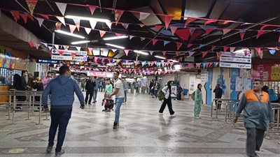 قامت الشركة المصرية لإدارة وتشغيل مترو الأنفاق بتزيين محطة مترو الشهداءبالخط الأول والثانى بصالة إتجاه حلوان