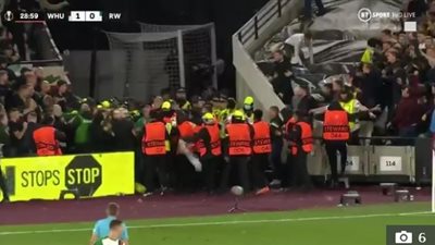وقعت اشتباكات المشجعين بعد ثوانٍ فقط من تقدم وست هام عبر ديكلان رايس، قفز عدد كبير من نهاية الزيارة