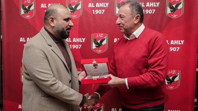 حرص الكابتن محمود الخطيب، رئيس مجلس إدارة النادي الأهلي، حرص على إهداء درع وعلم الأهلي للمعلق العماني خليل