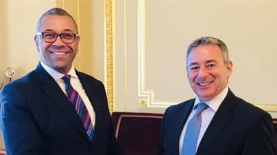 التقي السفير طارق عادل، سفير جمهورية مصر العربية في لندن، مع جيمس كليفرلي وزير الدولة البريطاني للشرق الأوسط