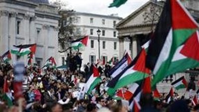 عرضت قناة القاهرة الإخبارية ، تقريرا تلفزيونيا بعنوان أيديكم ملطخة بالدماء.. تظاهرة مؤيدة للفلسطينيين في