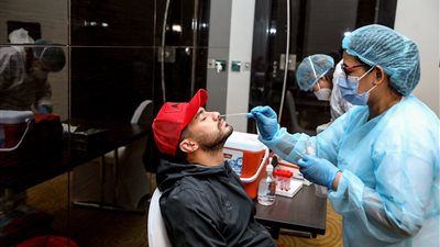 أجرى لاعبو الفريق الأول لكرة القدم بالنادي الأهلي وأعضاء بعثة فريق الكرة بالإمارات مسحة طبية جديدة صباح اليوم الجمعة