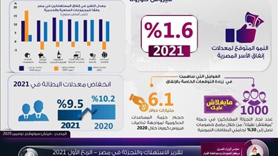 نشر مركز معلومات مجلس الوزراء انفوجراف ، أوضح خلاله أن "فيتش" أصدرت تقريري: "الاستهلاك والتجزئة في مصر" و"تعافي الاستهلاك في مصر