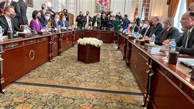 عقد سامح شكرى وزير الخارجية، اليوم السبت، جلسة مباحثات مع أنالينا بيربوك وزيرة خارجية ألمانيا الاتحادية، وذلك بقصر التحرير.