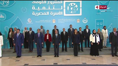 حرص الرئيس عبد الفتاح السيسي، على التقاط صورة تذكارية مع المشاركين في إطلاق المشروع القومى لتنمية الأسرة المصرية