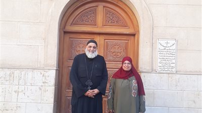 في مشهد يجسد معنى الوحدة الوطنية والمحبة بين المسلمين والمسيحيين، يقوم القمص بولس جميل راعي