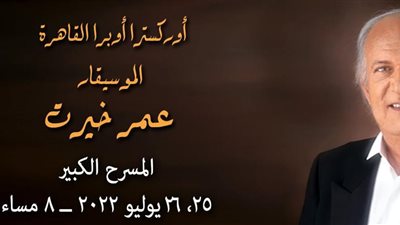 يقيم الموسيقار عمر خيرت، يومي 25 و26 يوليو الجاري، حفلا على خشبة المسرح الكبير بدار الأوبرا المصرية، .