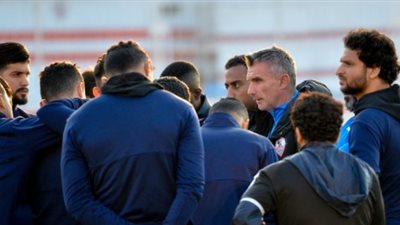 عقد الفرنسى باتريس كارتيرون المدير الفنى للفريق الكروى الأول بالنادى الزمالك، جلسة مع لاعبى الزمالك قبل مواجهة الأهلى