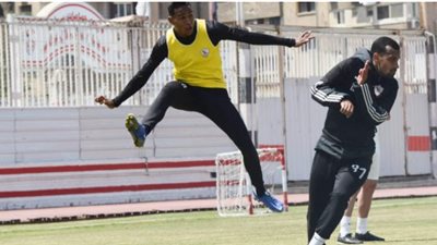 عقد أحمد عبد المقصود المدرب المساعد بفريق الزمالك جلسة مع يوسف أوباما لاعب الفريق على هامش التدريب الختامي للفريق