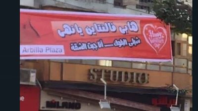 تداول رواد مواقع التواصل الاجتماعى صورة للافتنه تهنئة من أحد الأشخاص لفتاة بمناسبة عيد الحب تضمنت" جبت الشقة