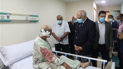 توجه اللواء أحمد راشد محافظ الجيزة إلى مستشفي الهرم للإطمئنان على حاله عمال النظافة المصابين إثر حادث تصادم سيارة نقل كبيرة (تريلا)