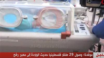 عرضت فضائية القاهرة الإخبارية اللقطات الأولى لأحد الأطفال الخدج الفلسطينيين أثناء نقله من سيارات الإسعاف الفلسطينية لسيارات