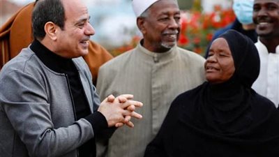 تحدث الرئيس عبد الفتاح السيسي إلى سيدة أسوانية من أصحاب العرضات لمنتجات الحرف اليدوية، بكورنيش أسوان.