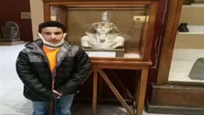 قال الطفل يوسف حواس، إنه يذهب إلى المتحف المصري ويشرح للزوار، المعالم والتحف الأثرية، وذلك بالتعاون مع إدارة المتحف.