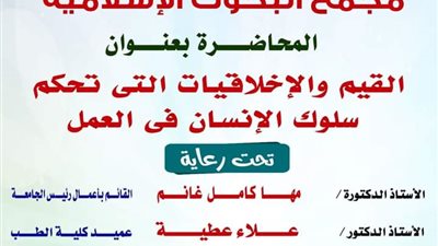 تنظم إدارة المستشفيات الجامعية بالتعاون مع مجمع البحوث الإسلامية محاضرة حول القيم والأخلاقيات التي تحكم