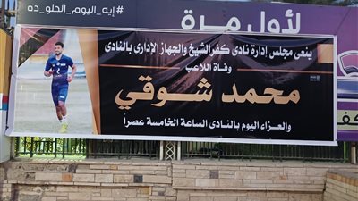 أكد الكابتن عبدالحميد مصطفى رئيس مجلس إدارة نادى كفرالشيخ ، أنه سيقام غدا الأربعاء 20 نوفمبر تلقى العزاء فى اللاعب الراحل ابن فريق كفرالشيخ محمد شوقى